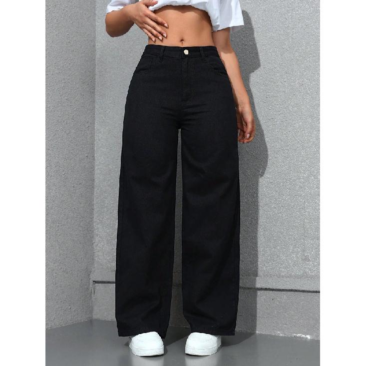 Джинсы Женские Винтажные Брюки с Широкими Штанинами Деним Высокая Посадка Выстиранные Потертые Базовые Прямые Брюки Уличная Одежда Длина в Пол L