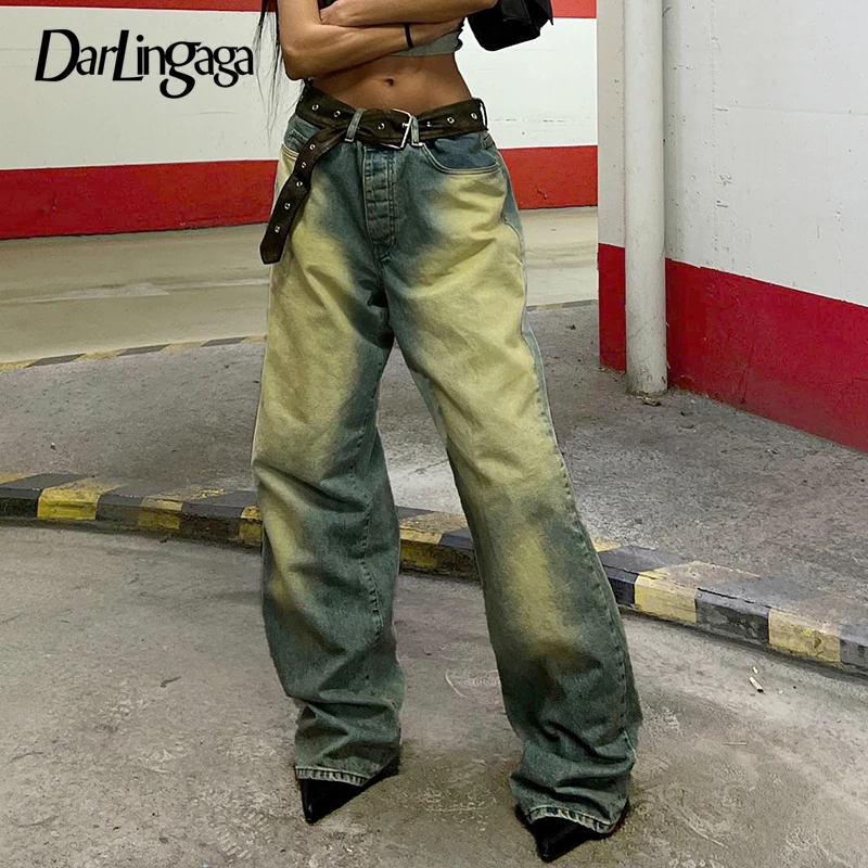 Джинсы женские градиентные состаренные с низкой посадкой, в стиле Харадзюку