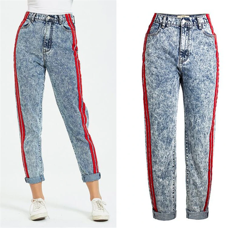 Джинсы женские с завышенной талией, модные брюки из денима, Свободные повседневные штаны с прострочкой, на осень-зиму