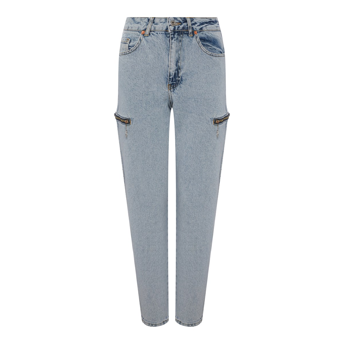 Джинсы-момы с молниями по бокам. Джинсы можно носить как с застегнутой так и с расстегнутой молнией по бокам. Расстегнутая молния создает эффект дырок на бедрах. Джинсы выполнены из высококачественной джинсы.