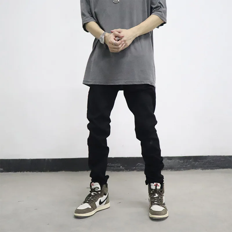 Джинсы мужские прямые стрейчевые, повседневные брюки из денима, приталенные, черные