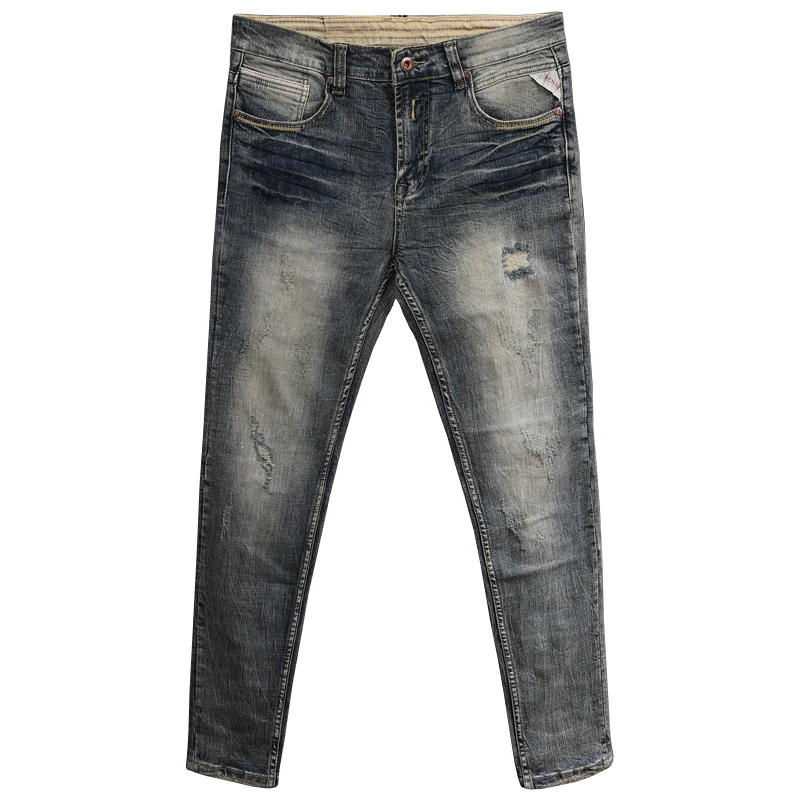 Джинсы мужские рваные в стиле ретро, Модные узкие брюки из денима с эффектом потертости, винтажные дизайнерские штаны, стиль хип-хоп, 2021