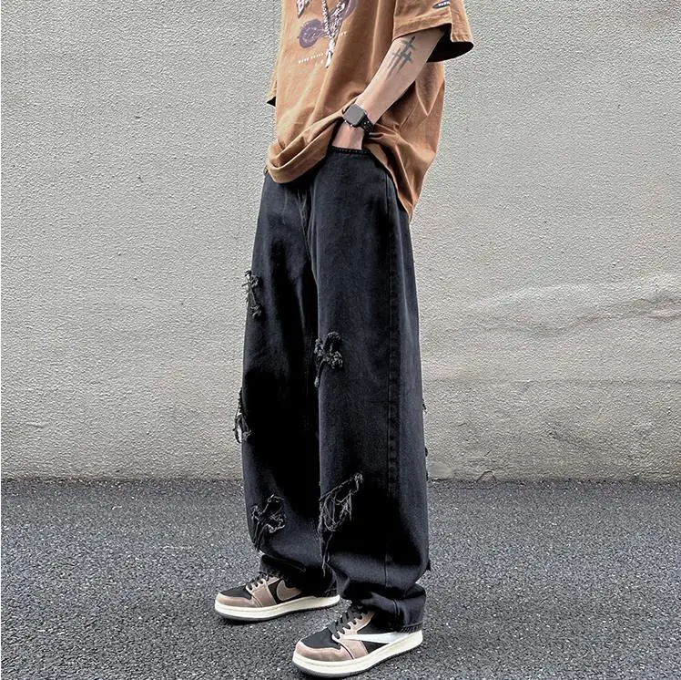Джинсы мужские свободного покроя, модные Брендовые однотонные повседневные Прямые брюки, спортивные штаны на весну и осень