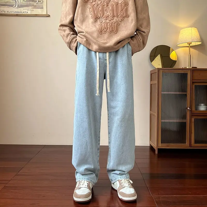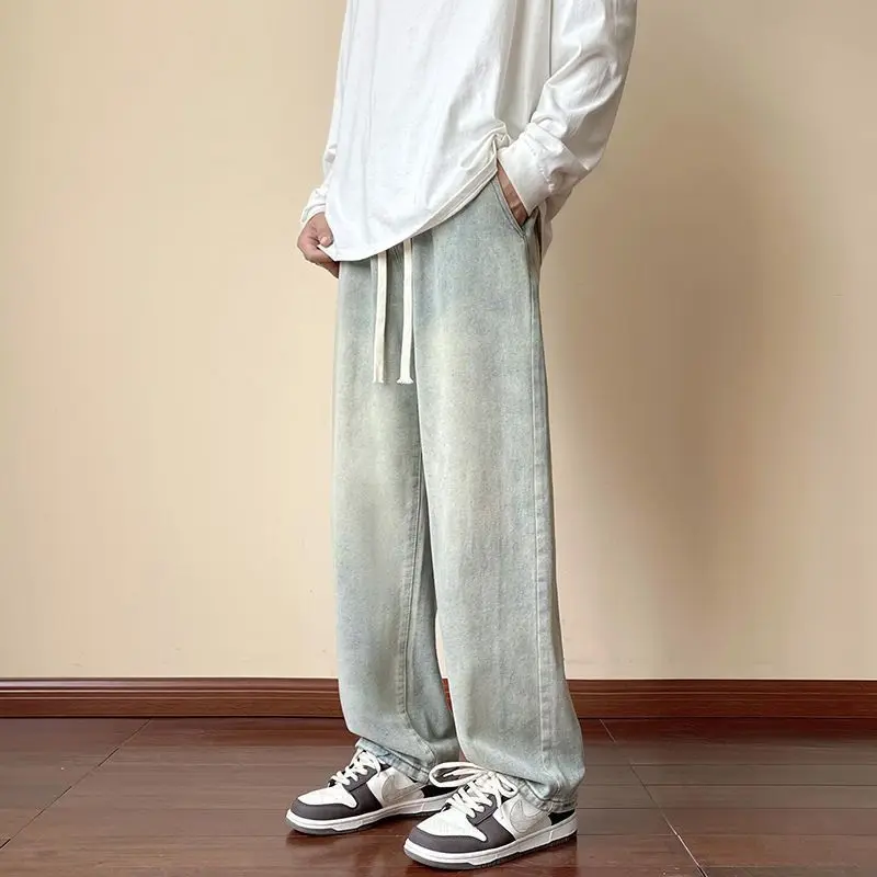 Джинсы мужские с эластичным поясом, широкие мешковатые джинсы в стиле ретро, модель F172, весна 2023