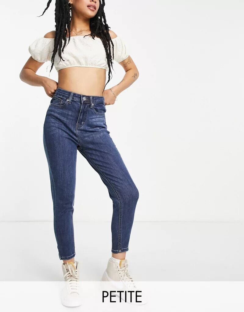 Джинсы скинни с высокой талией DTT Petite Ellie темно-синего цвета Don't Think Twice