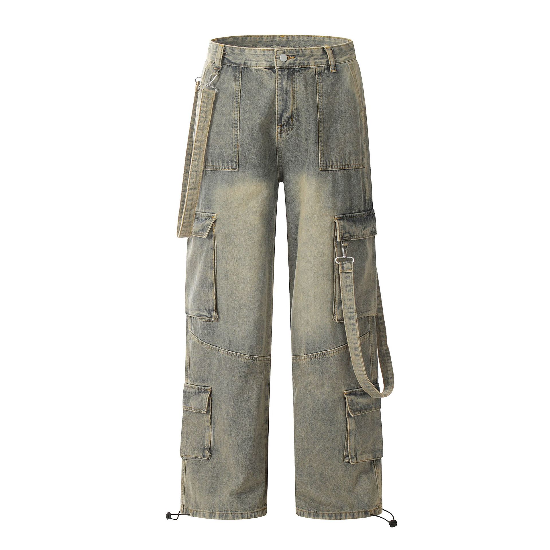 Джинсы American High Street со шнуровкой Design sense, выстиранные и отполированные, белые, винтажные, модные, брендовые, широкие джинсы для женщин L синий