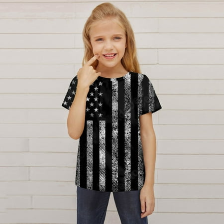 PEASKJP Girl sTops Tees Blouses Skin-Friendly Girls T Shirts Ruffle Shrit Plain Blank Tank Tops Short Sleeve Cotton Tshirts Basic Blouse Black 9-10 Years