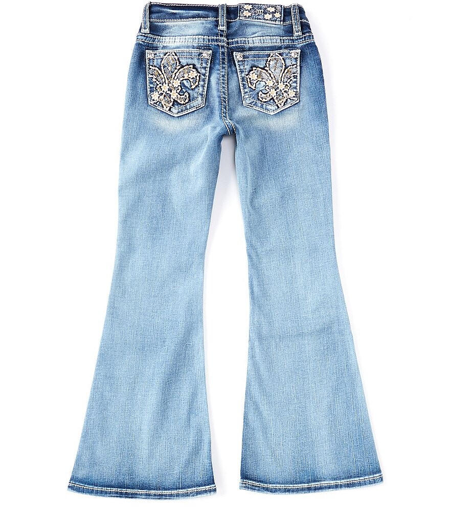 Джинсы Miss Me для больших девочек 7–16 лет со средней посадкой, темные расклешенные джинсы с деталями Fleur De Lis, синий