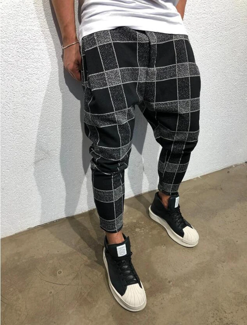 Джоггеры мужские в клетку, уличная одежда в стиле хип-хоп, повседневные брюки-карго, спортивные штаны с эластичным поясом, брюки-султанки
