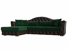 Диван угловой Артис левый угол Велюр/Экокожа Зелёный/Коричневый