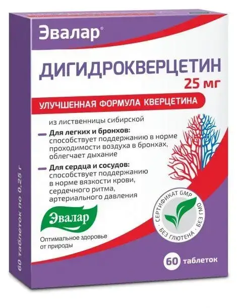 ДИГИДРОКВЕРЦЕТИН - флавоноид лиственницы сибирской в форме таблеток. Средство для нормализации вязкости крови и улучшения кровообращения в органах и тканях.