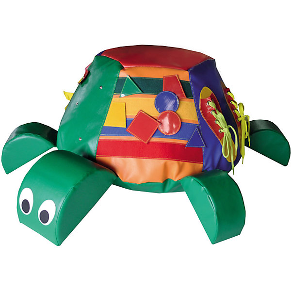 • 6 сторон панциря с развивающими элементами: фигурки на кнопках, пряжки, фигурки на липучках, молнии, шнурки-бантики, объемный мешок с завязкой;