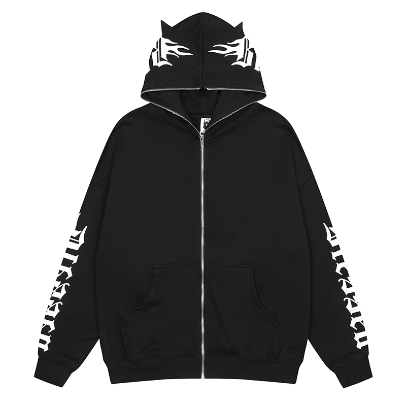 Дизайнерская винтажная толстовка с капюшоном с дьявольским Рогом, свитер для мужчин и женщин, модная толстовка с надписью, Черная мужская куртка, пальто