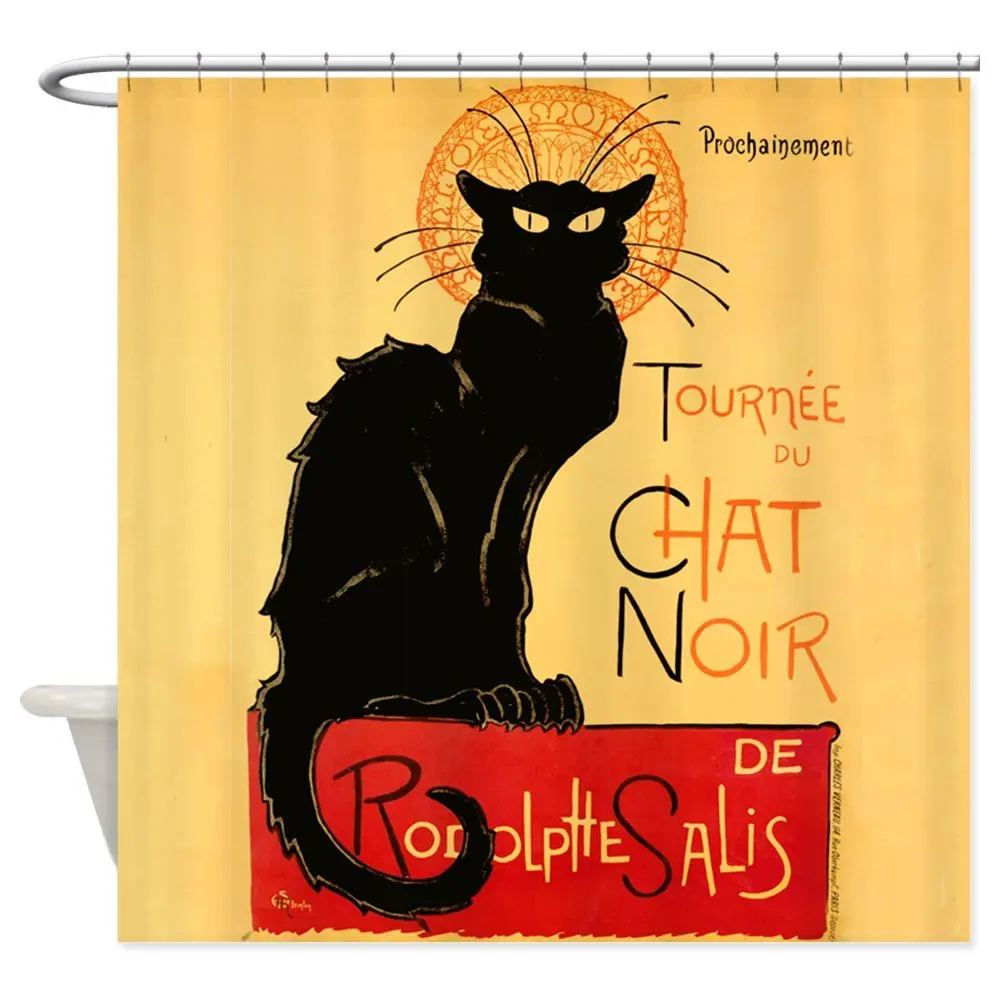 Дизайнерская занавеска для душа из французской ткани с изображением знаменитого черного кота