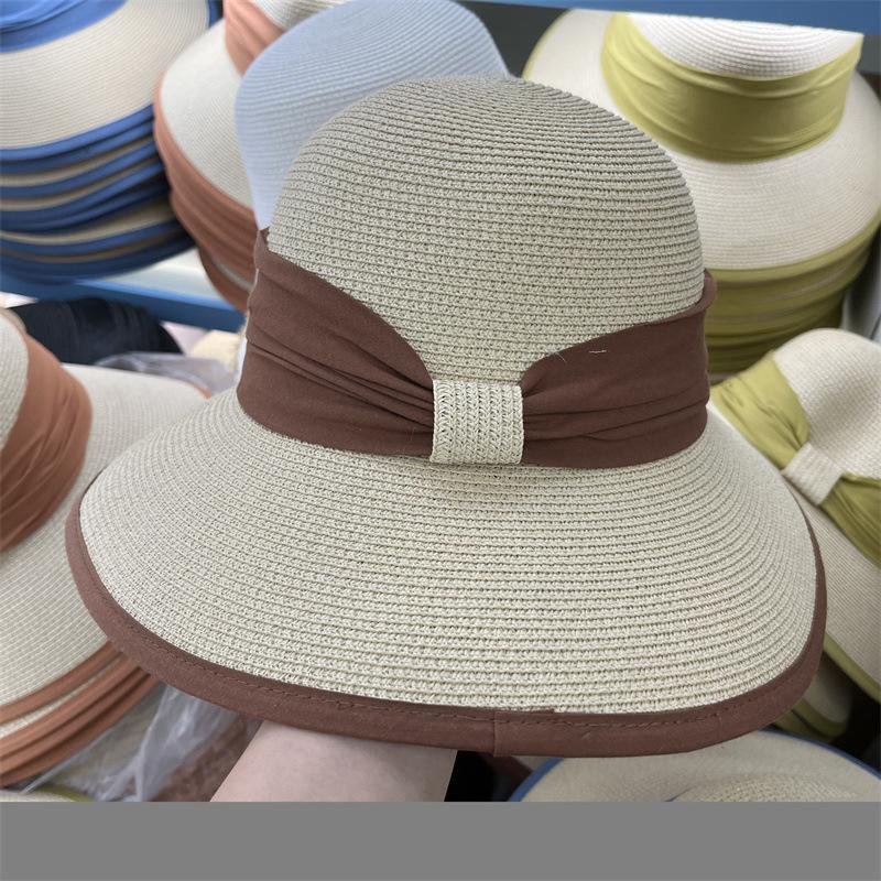 Дизайнерская соломенная шляпа, шляпа-ведро с подбором цветов, повседневная дорожная шляпа от солнца, пляжная защита от солнца, отпускная шляпа от солнца, женская Adult (55-58cm) темно-коричневого