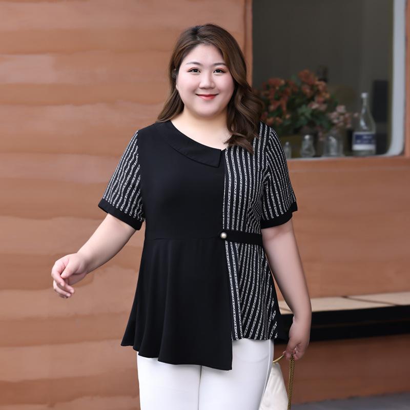 Дизайнерские асимметричные топы, модная женская футболка больших размеров, летняя темпераментная шифоновая рубашка 7XL чёрный