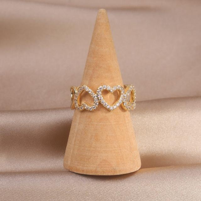 Дизайнерские модные ювелирные изделия 14-каратное настоящее золотое гальваническое полое кольцо с цирконием Love, элегантное женское открывающееся регулируемое кольцо Resizable белый