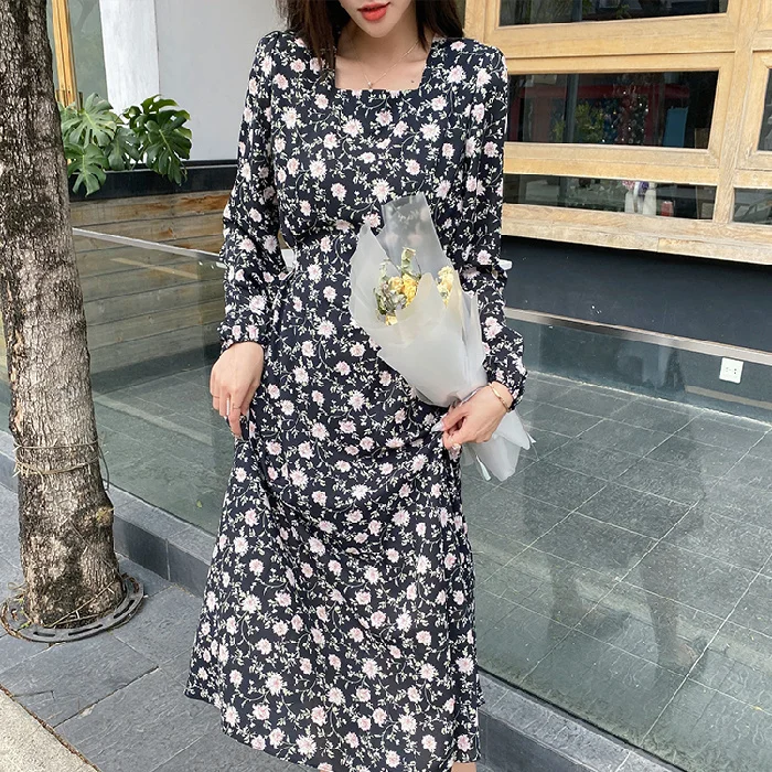 Дизайнерское осеннее платье с цветочным принтом и рукавами-фонариками