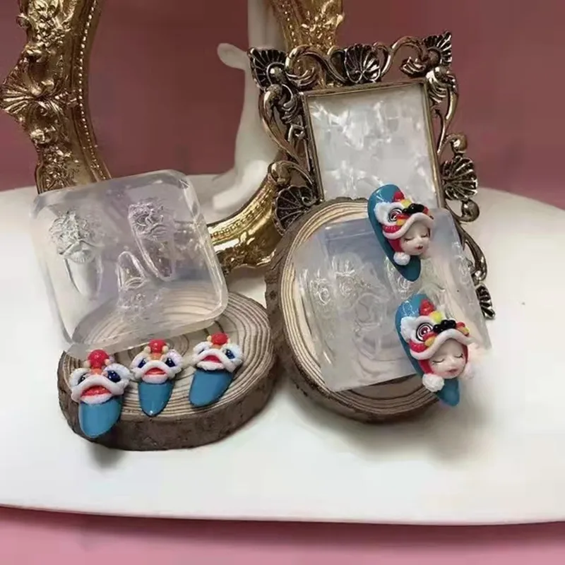 Дизайн ногтей любимая стереоскопическая форма силикагеля Новогодняя кукла льва DIY УФ клейкий шаблон