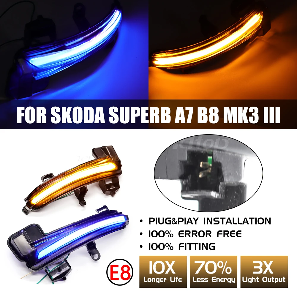 Динамический мигалка светодиодный поворотник светильник Зеркало заднего вида авто Боковой габаритный фонарь для Skoda Superb A7 B8 MK3 III Тип 3V 2016 2017...