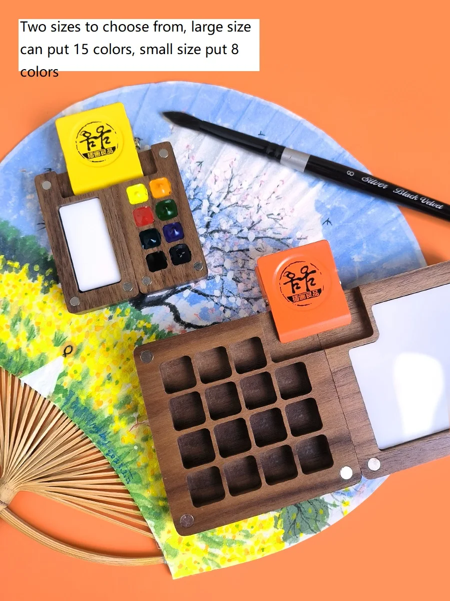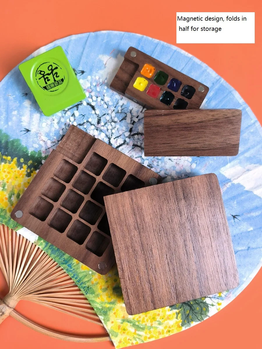 Диспенсер для акварели ореховый складной, 12 цветов, 15 цветов