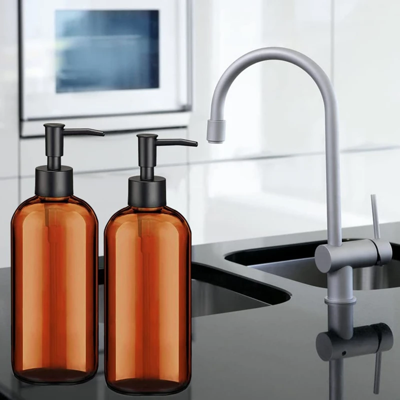 Диспенсер для янтарного мыла с насосом, (2 упаковки, 16 унций), диспенсер для мыла для ванной комнаты, диспенсер для мыла для рук