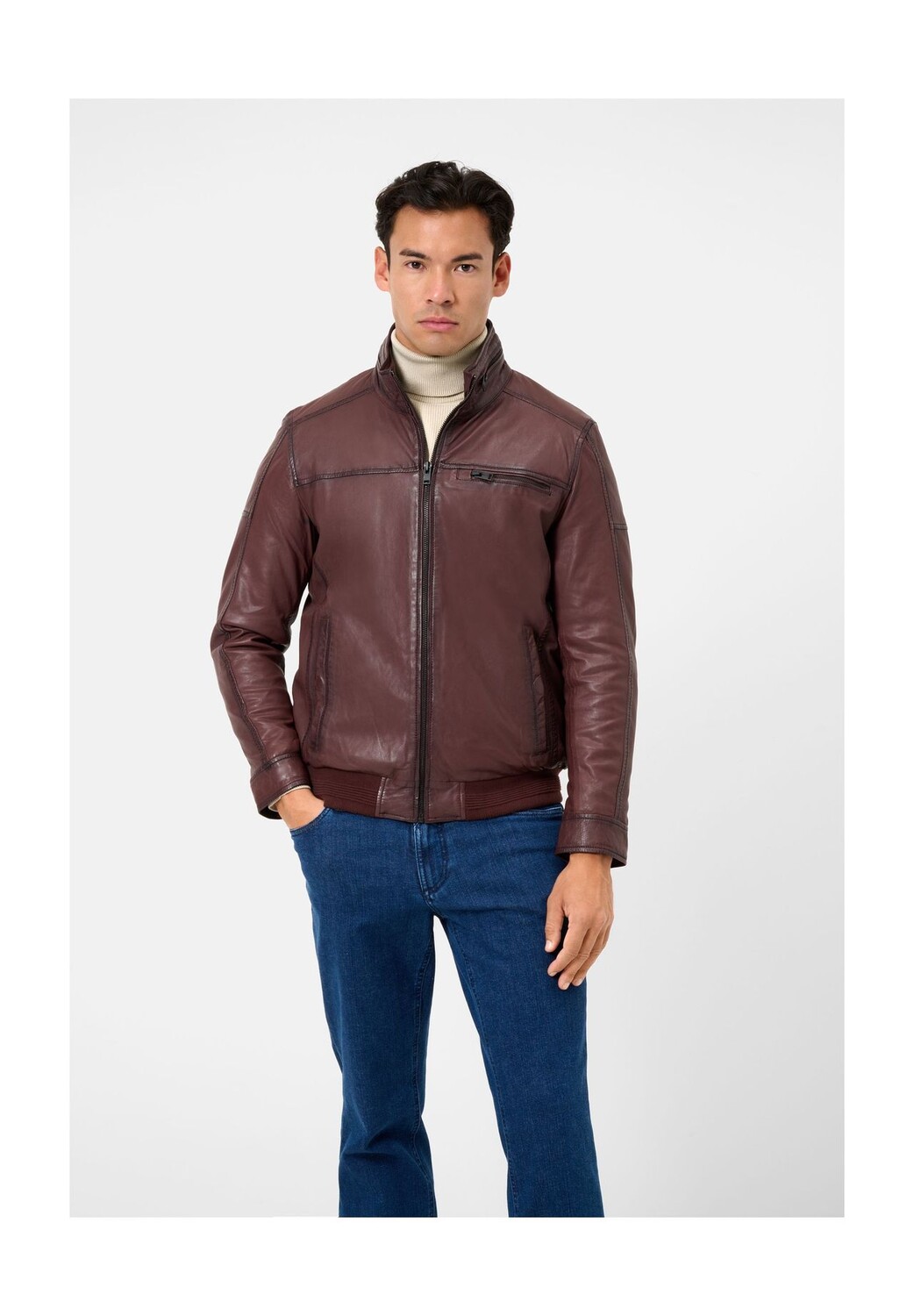 Мужская кожаная куртка Ricma в стиле блузон с воротником стойкой RICANO, коричневый