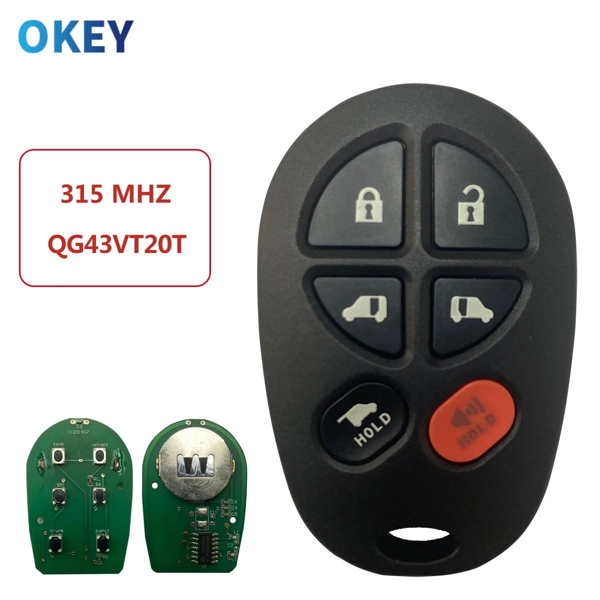 Дистанционный Автомобильный ключ Okey 315 МГц, 6 кнопок для Toyota Sienna 2004-2016 Toyota Sienna, автомобильный пульт дистанционного управления без ключа