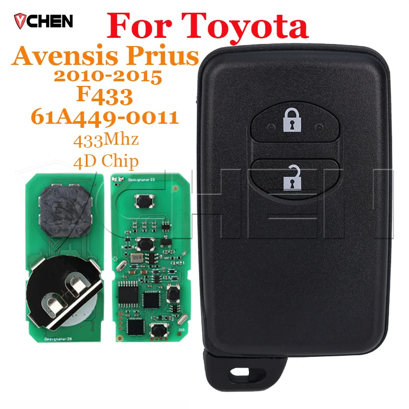 Умный брелок для Toyota Avensis Prius 2010-2015 433 МГц ID4D чип 61A449-0011 F433 B74EA B75EA 2 кнопки ключ управления автомобиля