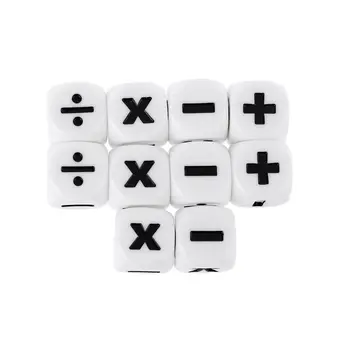 10pcs 16mm D6 Dice Mathematical Operators Arithmetic Dice Club Pub Board Game White Acrylic Round Corner Dice