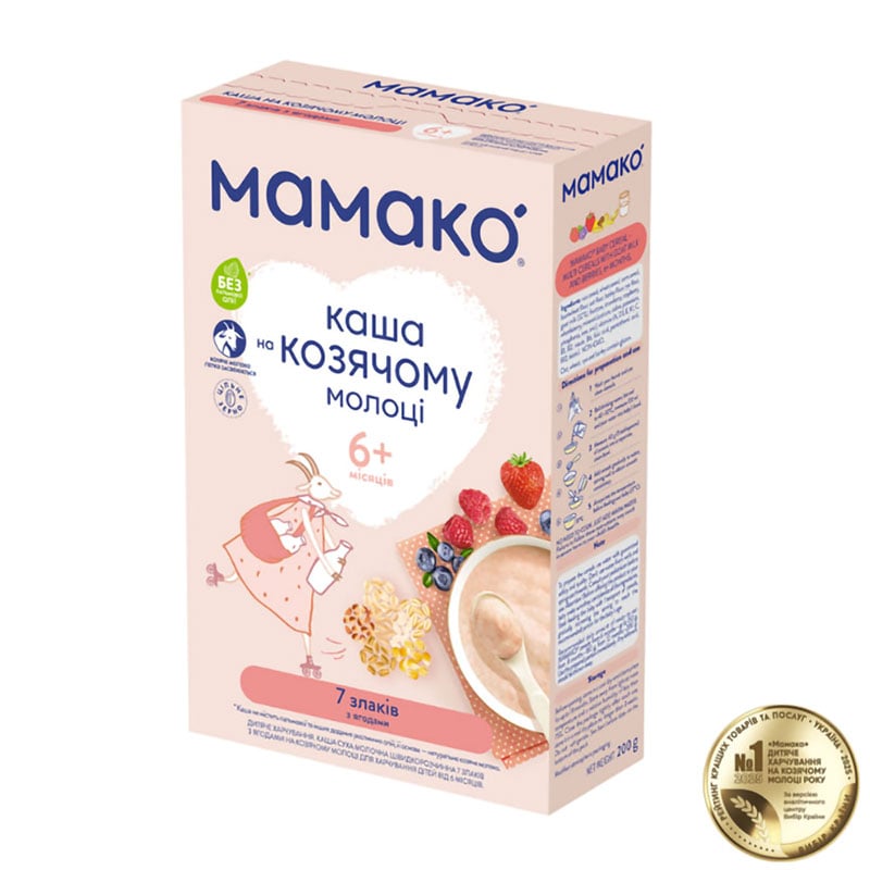 Дитяча молочна каша МАМАКО 7 злаків з ягодами на козячому молоці, від 6 місяців, 200 г