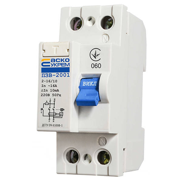 Дифреле (УЗО) АСКО-УКРЕМ ПЗВ-2001 2п 16А 10mА (A0020010001)