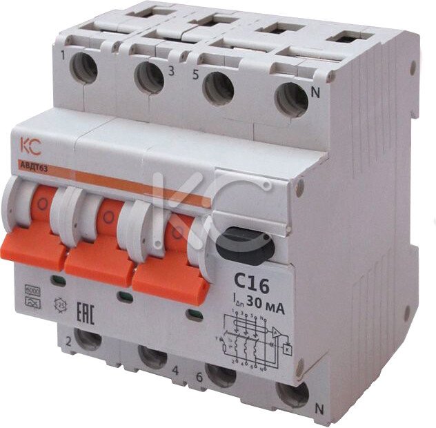 Дифференциальный автомат КС АВДТ-63 3р+N C 16А30мА А 6кА 72903