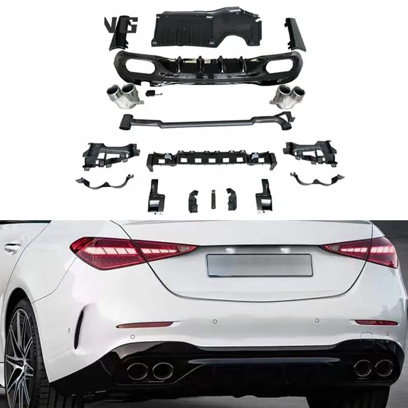 Диффузор для заднего бампера Benz C Class W206 C43AMG, спойлер, крыло багажника, корпус крыла, сплиттер, крышка, отделка, выхлопная труба, выхлопная труба