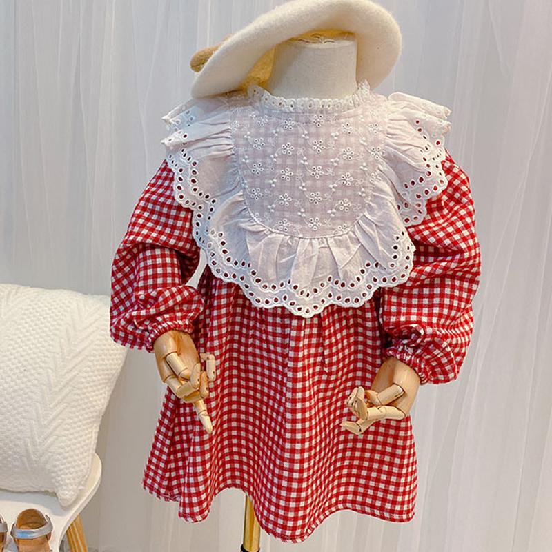 Girls' Dresses Children'S Wear 2020 Autumn New Style Baby Kids Girls Retro Gentle Style Hollow Flower Ears A Version Plaid Dress, Mx565 black