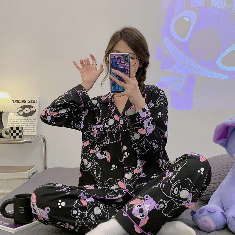 Длинная Пижама с героями аниме Sanrio Hello Kitty Kuromi Kawaii, свободная Пижама с героями мультфильмов, пижамный комплект, пижама с длинными рукавами, милые подарки для девочек