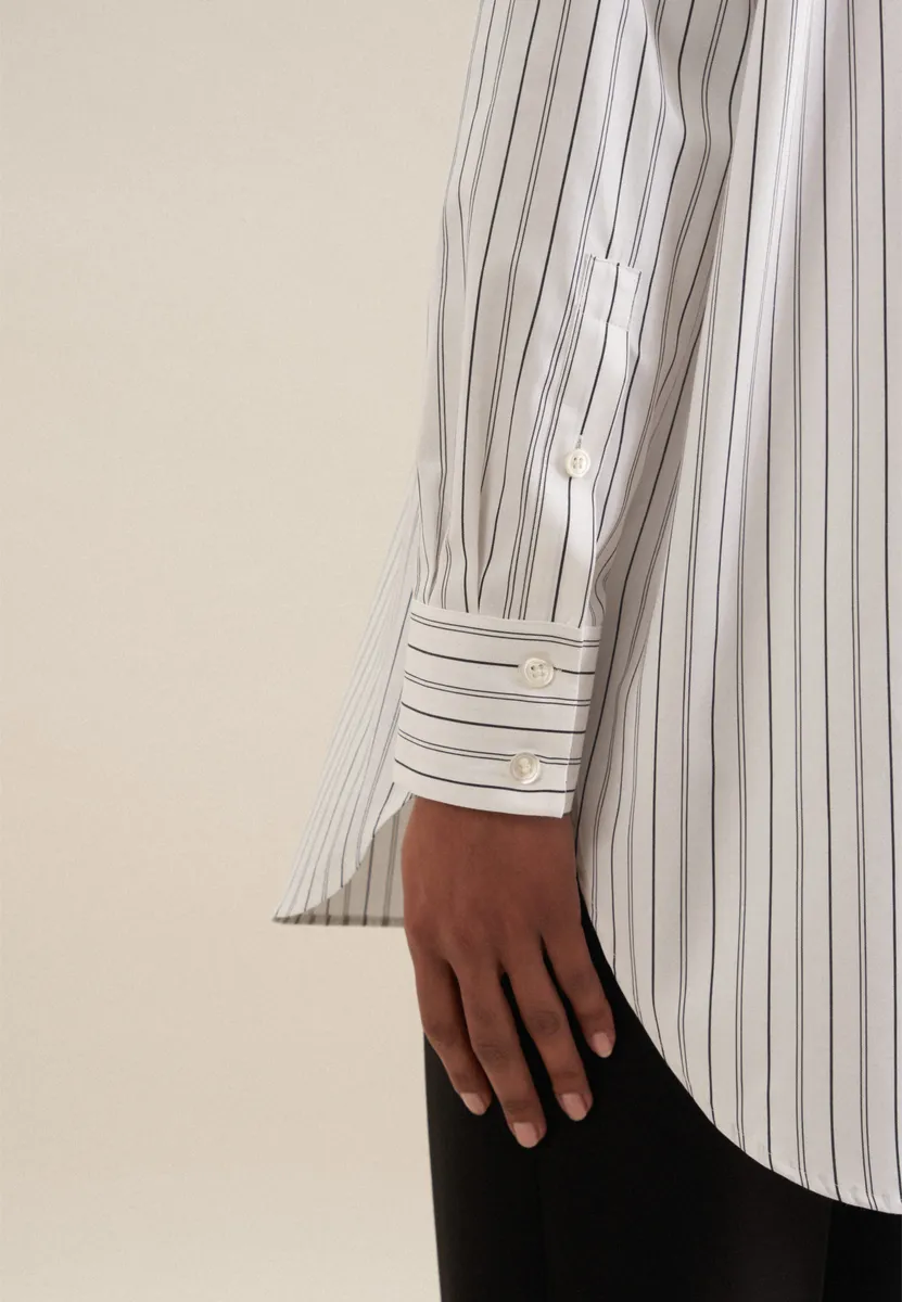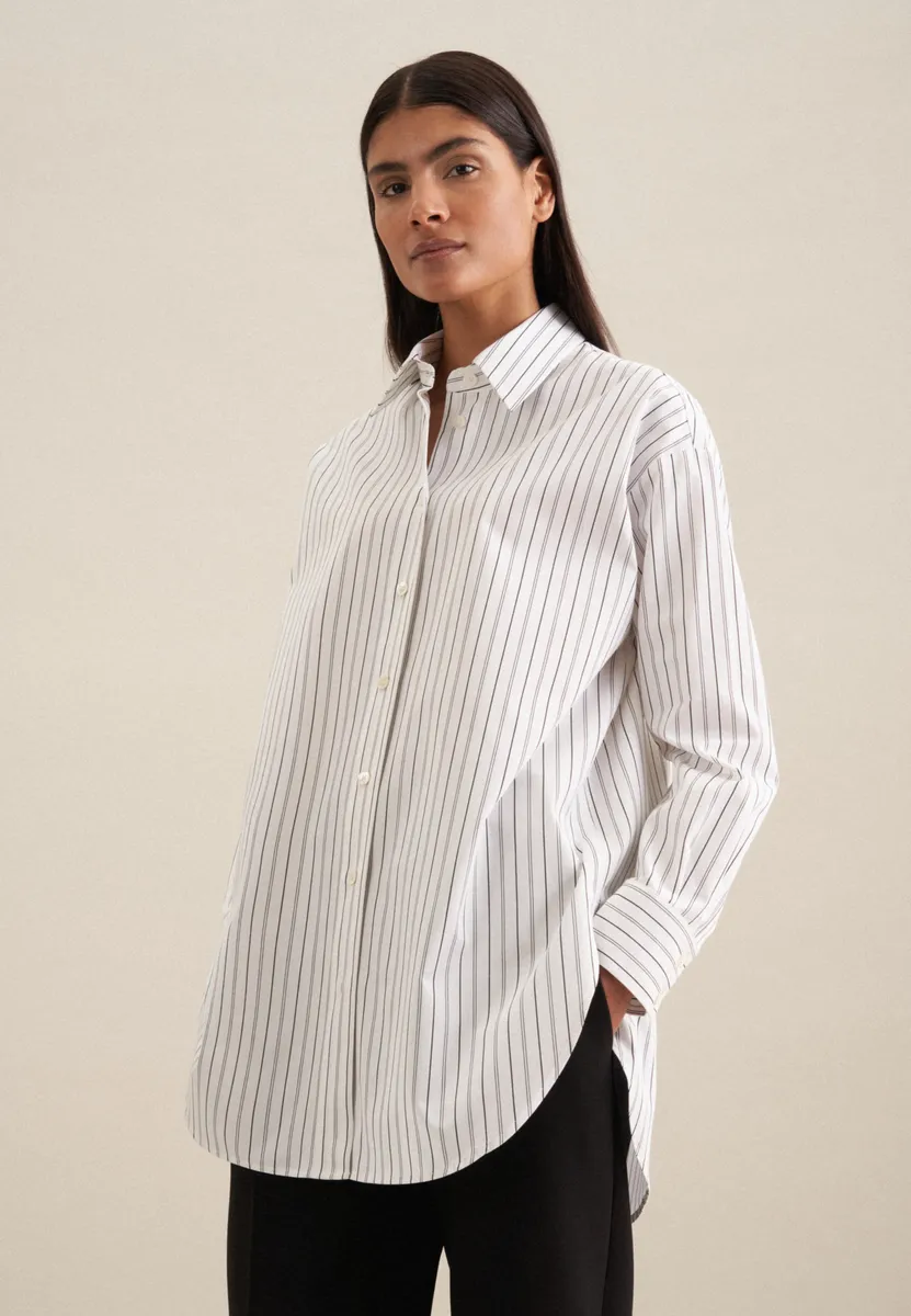 Длинная блузка seidensticker "Black Rose", воротник с длинными рукавами и полосками, белый