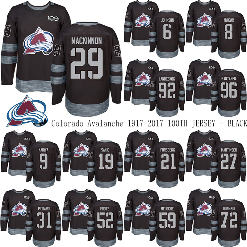 Custom Colorado Avalanche 1917-2017 100TH Anniversary Jersey 8 Cale Makar 29 MacKinnon 49 Samuel Girard Any Name Any Number Hockey Jerseys, Black