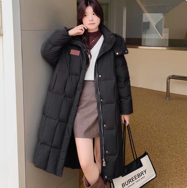 Длинная куртка с капюшоном, женская, новая зимняя, белая, с утиным пухом, большая, универсальная, распродажная, антисезонная куртка S Recommendation 85-72.5 kg чёрный