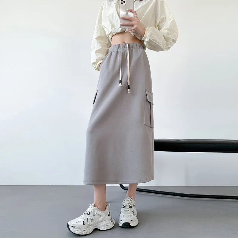 Длинная облегающая юбка в Корейском стиле, женская модная однотонная уличная одежда с высокой талией, элегантная женская мода Y2k, Женская Корейская одежда на осень