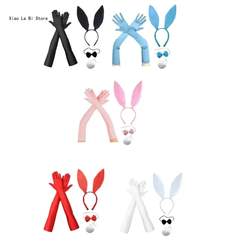 Длинная повязка на голову с кроличьими ушками, галстук-бабочка, сексуальный костюм кролика, клубный наряд для вечеринки, костюм,