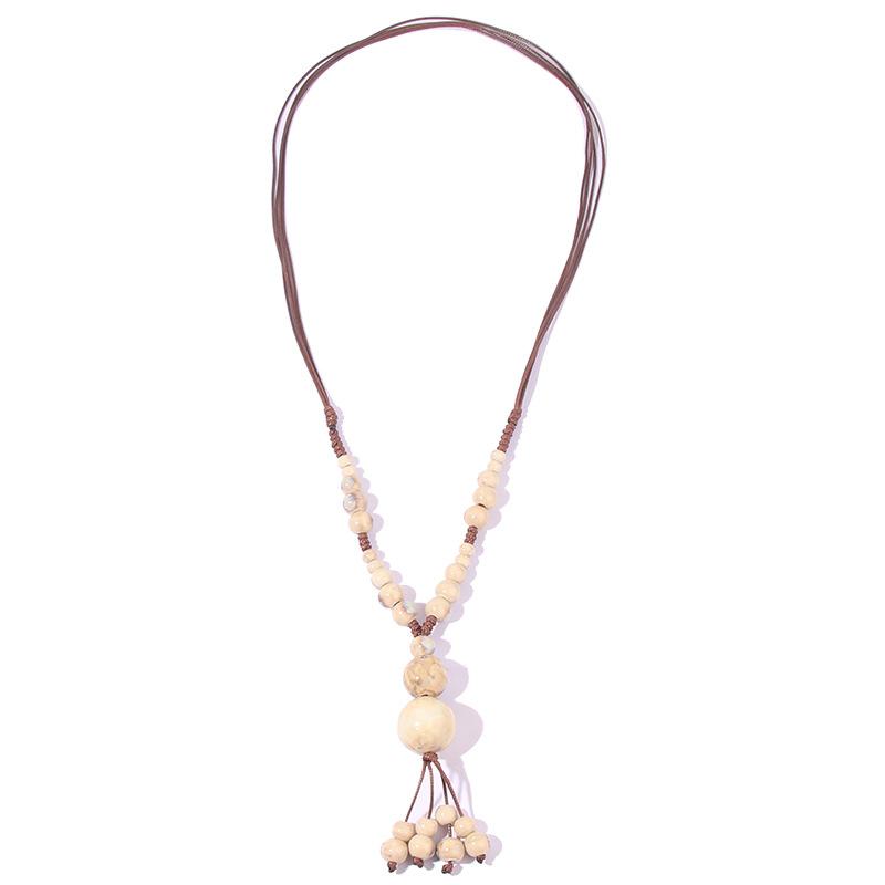 Длинная тканая цепочка для свитера в этническом стиле, универсальное женское керамическое ожерелье ручной работы из тыквы, подарок на праздник, ожерелье с подвеской 51-68cm против вспышки белого