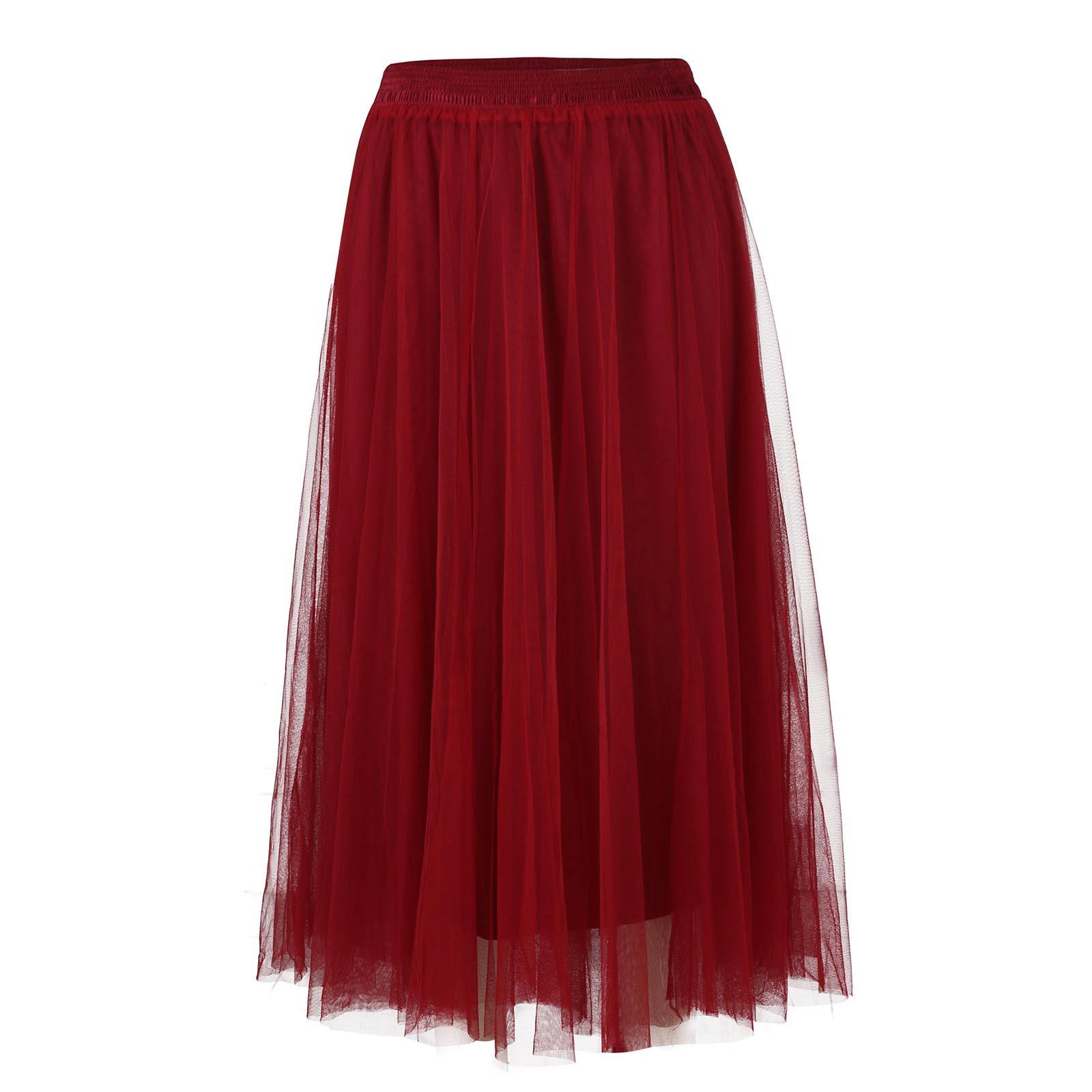 Длинная тюлевая однотонная элегантная юбка с блестками и блестками, многослойная сетчатая юбка чайной длины с большим подолом для женщин S винный
