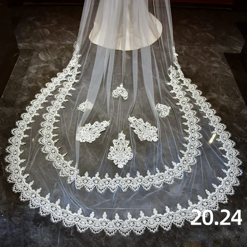 Длинная фата для невесты MZA48, фата для невесты с кружевными краями, свадебная фата, 1 ярус, мягкое Тюлевое свадебное платье, аксессуары для невесты