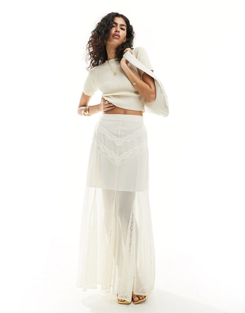 Длинная юбка-годе из кремового шифона Miss Selfridge с кружевными вставками