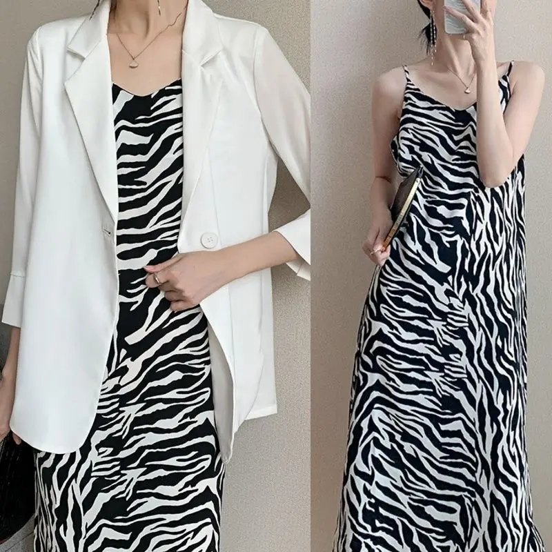 Длинная юбка с V-образным вырезом, юбка с лямкой на шее в виде зебры, подчеркивает живот, базовая Свободная Женская юбка для весны и лета, моде...