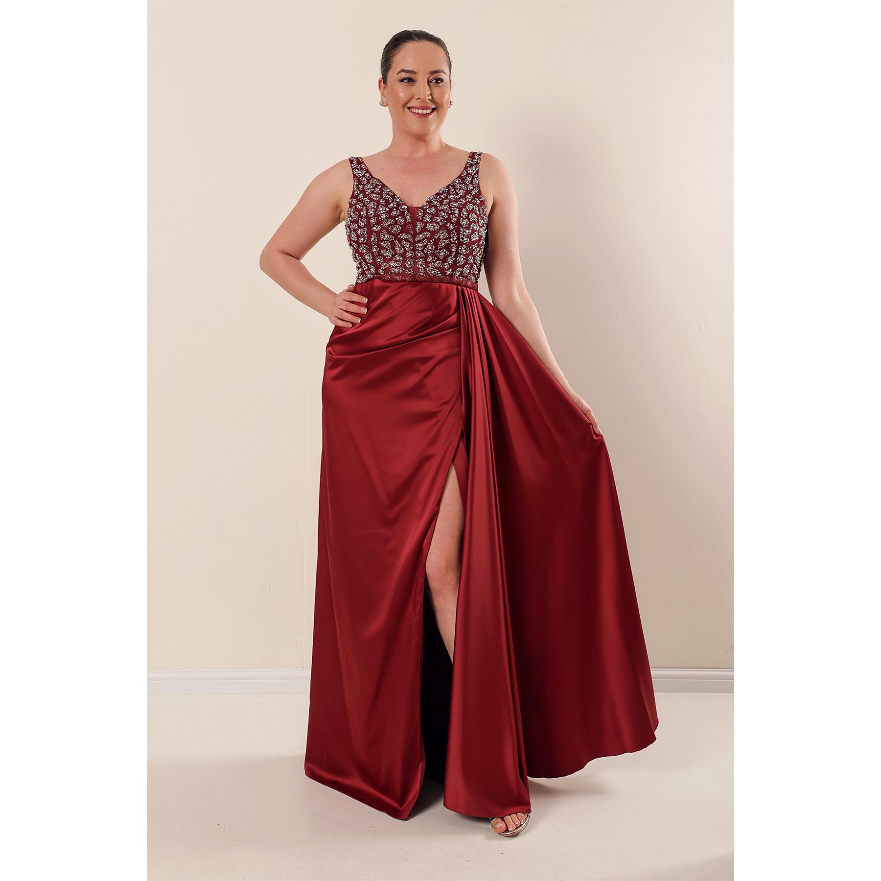 Длинное атласное платье больших размеров с топом на подкладке из тюля и камнями