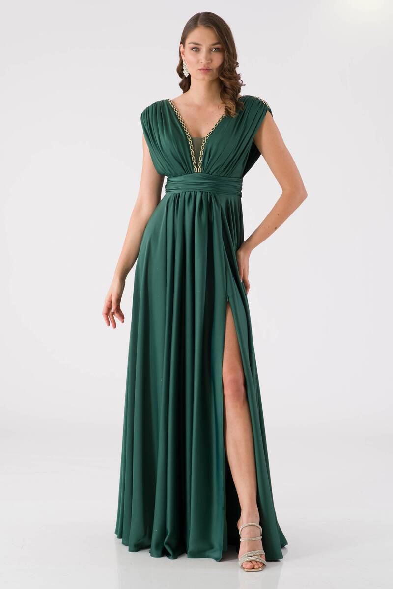 Длинное вечернее платье с глубоким вырезом и V-образным вырезом Emerald ELVAN