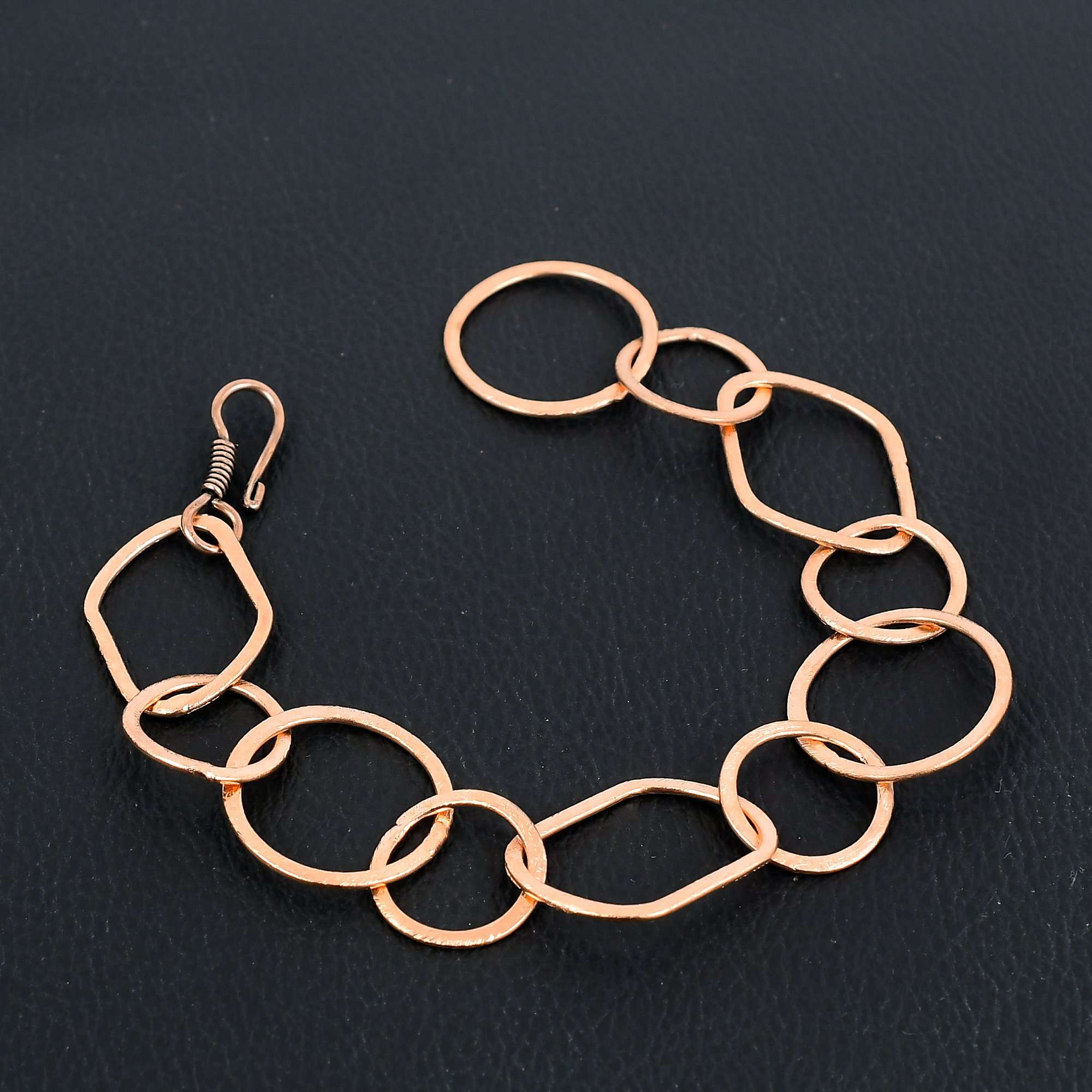 Длинное ожерелье из кованой чистой меди с маленькими и большими круглыми овальными звеньями, минималистские украшения, медные украшения ручной работы для нее/него