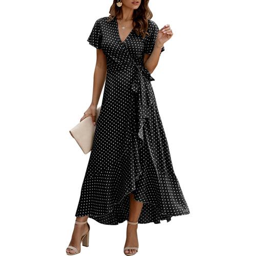 Длинное платье макси, женское модное сексуальное пляжное платье с оборками на шнуровке для вечеринки, элегантное шифоновое платье в горошек, летние платья 2023 XXL чёрный